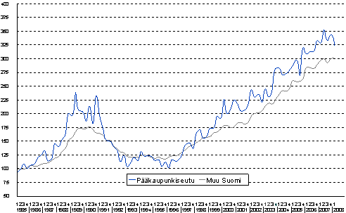 Lähde: Kiinteistöjen hintaindeksi, 1. neljännes 2008. Tilastokeskus
