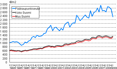 Omakotitalojen keskimääräiset neliöhinnat 1. neljännes 1994 - 1. neljännes 2009