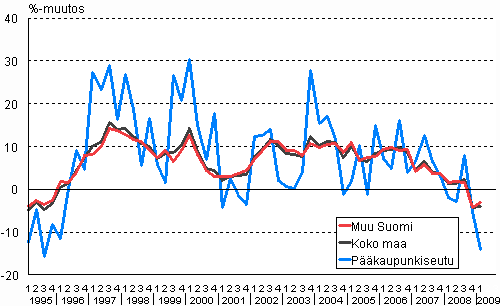Omakotitalojen nimellishintaindeksin vuosimuutos 1. neljännes 1995 - 1. neljännes 2009