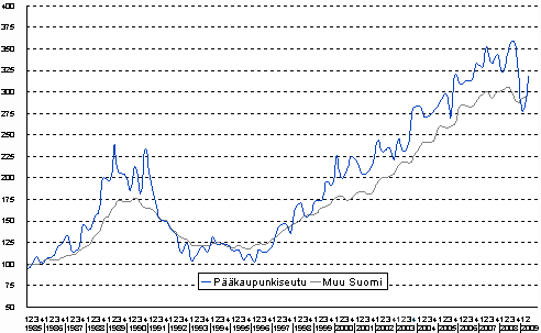 Lähde: Kiinteistöjen hintaindeksi, 2. neljännes 2009. Tilastokeskus