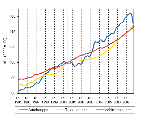 Auto-, tukku- ja vähittäiskaupan liikevaihdon trendisarjat