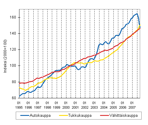 Auto-, tukku- ja vähittäiskaupan liikevaihdon trendisarjat
