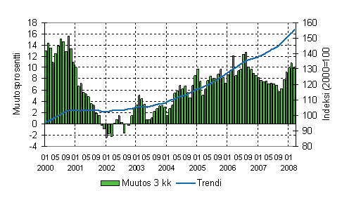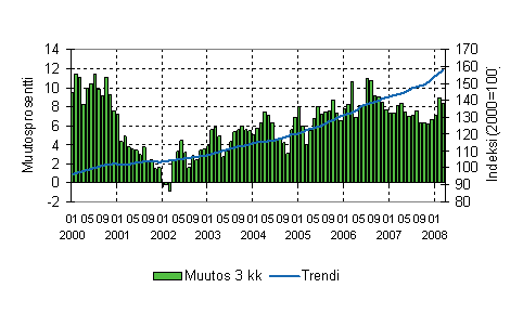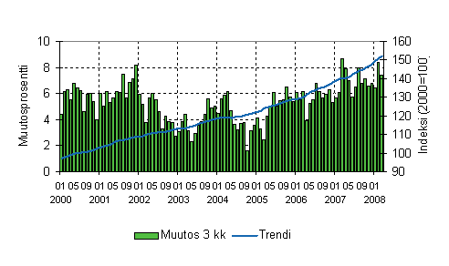 kuukauden vuosimuutokset tammi-maaliskuun 2008 välisenä