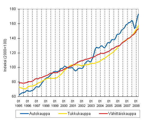 Auto-, tukku- ja vähittäiskaupan liikevaihdon trendisarjat