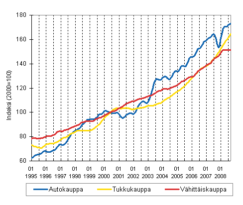 Auto-, tukku- ja vähittäiskaupan liikevaihdon trendisarjat