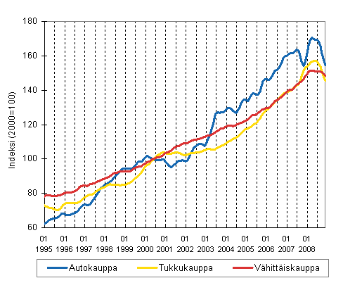 Auto-, tukku- ja vähittäiskaupan liikevaihdon trendisarjat