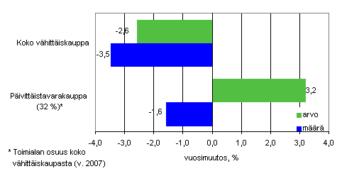 | - päivittäistavarakauppa | 8,6 | 6,7 | 1,8 | 3,2 |