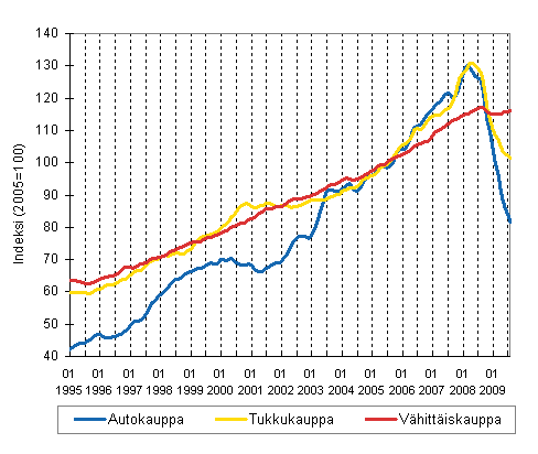Auto-, tukku- ja vähittäiskaupan liikevaihdon trendisarjat (TOL 2008)