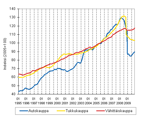Auto-, tukku- ja vähittäiskaupan liikevaihdon trendisarjat (TOL 2008)