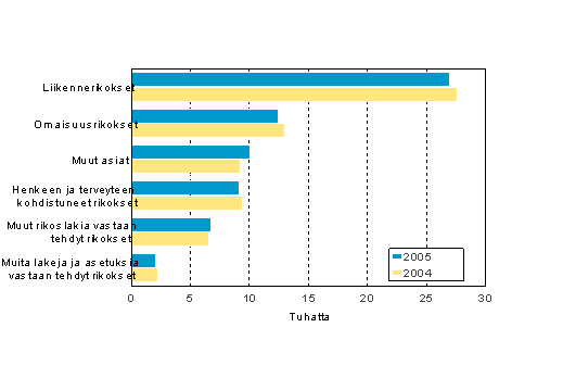 Vuonna 2005 käräjäoikeuksissa ratkaistiin Tilastokeskuksen mukaan 67 700 rikosoikeudellista asiaa, vajaat 400 vähemmän kuin vuotta aiemmin. Ratkaistuista asioista oli varsinaisia rikosasioita 57 607, joista rikoslakirikoksia oli 55 524. Eniten rikosoikeudenkäyntejä aiheuttivat liikennerikokset, joita oli 39,8 prosenttia kaikista rikosasioista. Liikennerikoksista 12 627 oli törkeitä rattijuopumuksia, viisi prosenttia vähemmän kuin edellisenä vuonna, ja rattijuopumuksia 8 129.