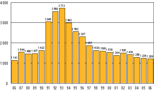 Vireille pannut konkurssit tammi-kesäkuussa 1986-2006