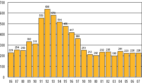 Anhängiggjorda konkurser i januari 1986-2007