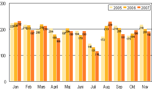 Anhängiggjorda konkurser under januari- november 2005-2007