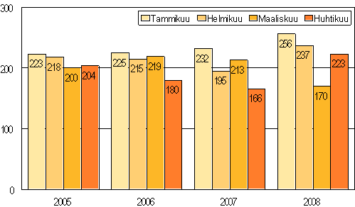 Henkilökunnan määrä tammi-huhtikuu 2008 |