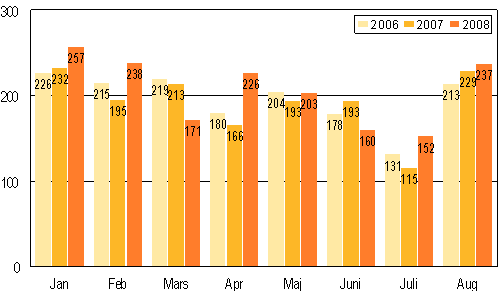 Källa: Konkurser 2008, augusti. Statistikcentralen