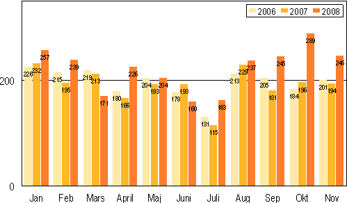Antalet anställda, januari-november 2008 |