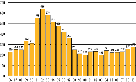 Anhängiggjorda konkurser i januari 1986-2009