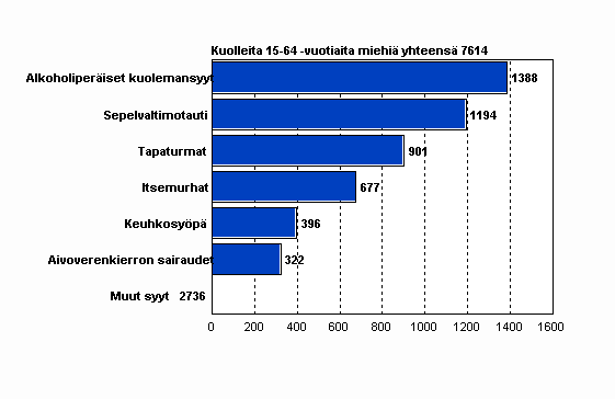 Työikäisten (15-64 -vuotiaat) miesten yleisimmän kuolemansyyt vuonna 2008