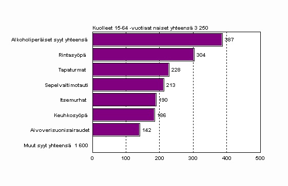 Työikäisten (15-64 -v) naisten yleisimmät kuolemansyyt vuonna 2008