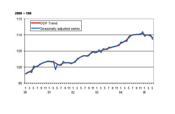 Volume of GDP in 2000 - 2005, trend and seasonally adjusted series
