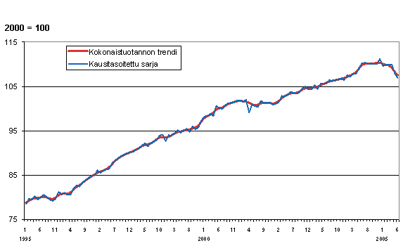 Lähde: Kokonaistuotannon kuukausikuvaaja 2005, kesäkuu. Tilastokeskus