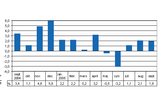 Totalproduktionen ökade med 1,9 procent från september år 2004