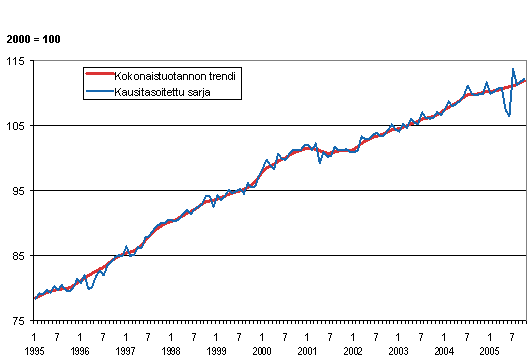 Lähde: Kokonaistuotannon kuukausikuvaaja 2005, lokakuu. Tilastokeskus
