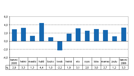 Kokonaistuotanto oli 3,3 prosenttia suurempi kuin vuoden 2005 tammikuussa