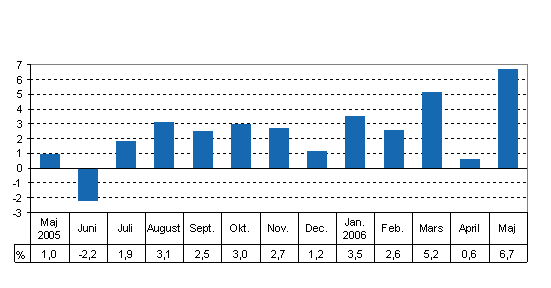 Totalproduktionen var 6,7 procent större än i maj år 2005