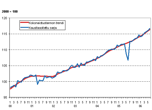 Lähde: Kokonaistuotannon kuukausikuvaaja 2006, kesäkuu. Tilastokeskus