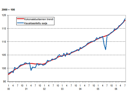 Lähde: Kokonaistuotannon kuukausikuvaaja 2006, heinäkuu. Tilastokeskus