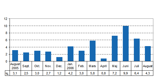 Totalproduktionen var 4,3 procent större än i augusti år 2005