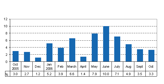 Total output was 3.3 per cent higher than in October 2005