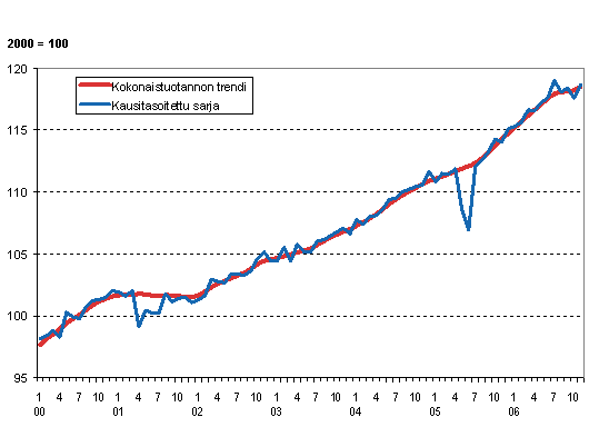 Lähde: Kokonaistuotannon kuukausikuvaaja 2006, marraskuu. Tilastokeskus