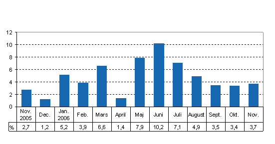Totalproduktionen var 3,7 procent större än i november år 2005