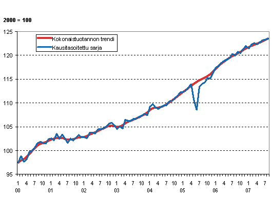 Lähde: Kokonaistuotannon kuukausikuvaaja 2007, elokuu. Tilastokeskus