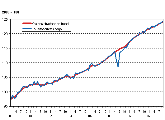 Lähde: Kokonaistuotannon kuukausikuvaaja 2007, syyskuu. Tilastokeskus