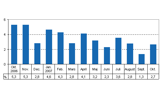 Totalproduktionen var 2,7 procent större än i oktober år 2006