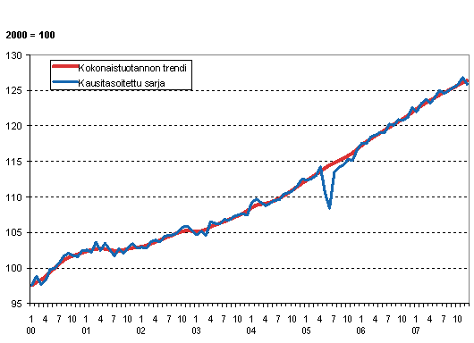 Lähde: Kokonaistuotannon kuukausikuvaaja 2007, joulukuu. Tilastokeskus