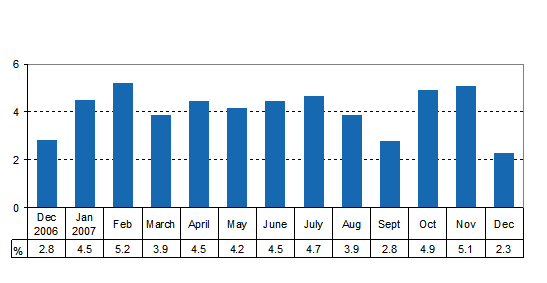 Total output was 2.3 per cent higher than in December 2006