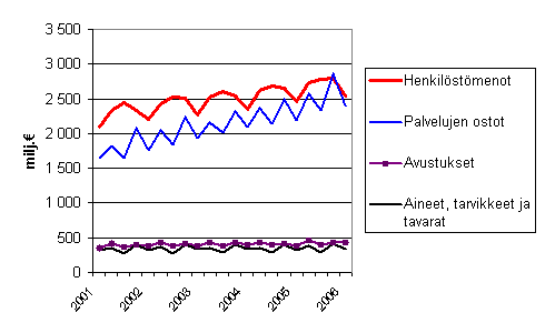 Kuntien toimintamenoja neljänneksittäin