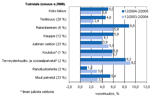 Lähde: Liiketoiminnan kuukausikuvaajat 2005, helmikuu. Tilastokeskus