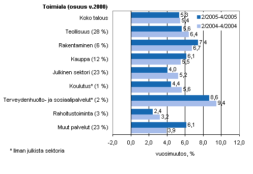 Lähde: Liiketoiminnan kuukausikuvaajat 2005, huhtikuu. Tilastokeskus
