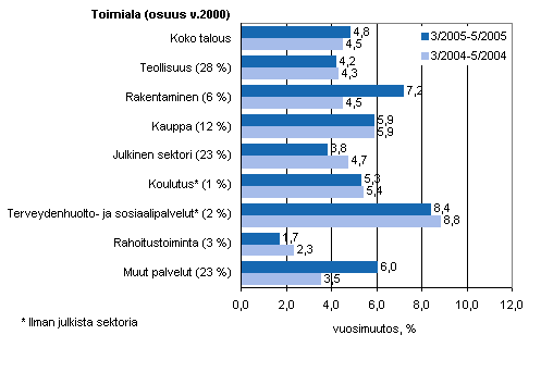 Koko talouden palkkasumma oli vuoden 2005 maalis-toukokuussa 4,8 prosenttia suurempi kuin edellisvuoden vastaavana ajanjaksona. Kasvu oli hieman nopeampaa kuin vuotta aiemmin, jolloin vastaava muutos oli 4,5 prosenttia.