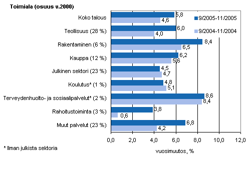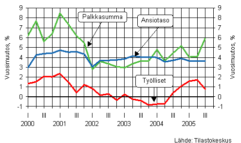 Koko talouden palkkasumma oli vuoden 2005 syys-marraskuussa 5,8 prosenttia korkeampi kuin vastaavana ajanjaksona vuotta aiemmin. Kasvu kiihtyi selvästi edellisvuodesta, jolloin kasvu oli 4,6 prosenttia. Koko talouden palkkasumman kohoamista kiihdytti etenkin palvelualojen yritysten palkkasumman ripeä kasvu.