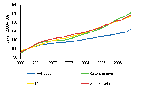 Palkkasumman trendit toimialoittain 10/2006