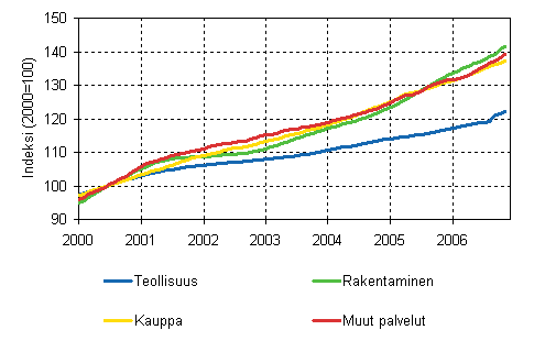 Palkkasumman trendit toimialoittain 11/2006