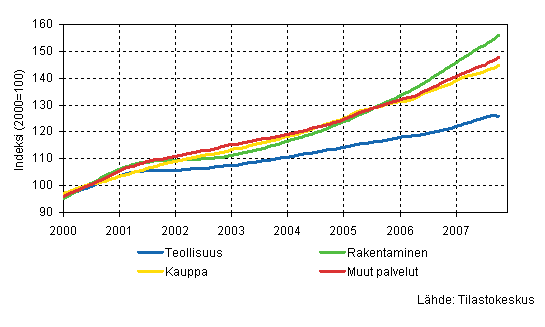 Palkkasumman trendit toimialoittain 10/2007
