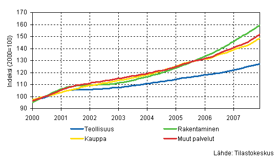 Palkkasumman trendit toimialoittain 12/2007