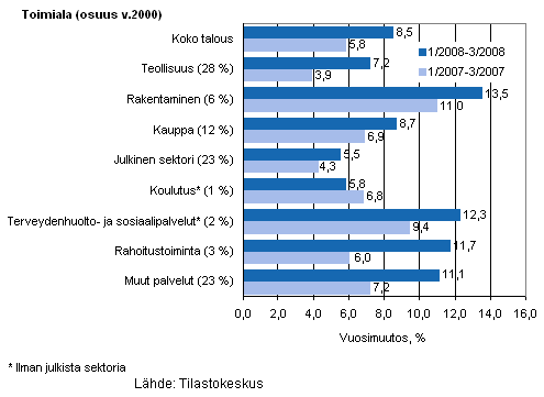 Lähde: Liiketoiminnan kuukausikuvaajat 2008, maaliskuu. Tilastokeskus